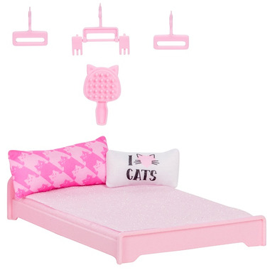 - BACKPACK CONVERTS INTO PLAYSET: Convert the backpack into a bedroom playset matching Reena De La Rosa tabby cat-inspired style. Use the mini hangers with clips to hang up doll clothing in the closet. There's also a working drawer for storage. Drop down the murphy bed and decorate with included pillows and blanket.