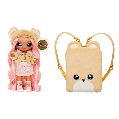 Unbox the most fashionable playset for your dolls with the Na! Na! Na! Surprise Backpack Bedroom. This adorable, soft playset is 3-in-1 – a stylish, teddy bear backpack, adorable bedroom playset with closet and limited edition soft fashion doll, Sarah Snuggles. The gorgeous backpack is soft and fuzzy, and has a personality that totally matches Sarah's personality. Open it up to reveal a bedroom playset with real mirror, fold-out bed, closet with working drawers, pillows, blanket and hangers, all with cute, kitty details. Includes a limited edition articulated soft fashion doll – Sarah Snuggle. She has gorgeous, long hair, a fuzzy teddy bear hat, and she comes wearing an exclusive outfit and shoes. When finished playing, pack everything up and take the backpack one-the-go. Two styles to collect.