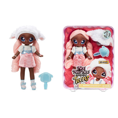 Na Na Na Surprise Teens are beautiful, 11"soft fashion dolls with so much personality and glamorous style. Lila Lamb is inspired by a sheep. She has long, pink hair and printed face and clothing details. She comes with new window box packaging to show off all the quality details. She has a fluffy hat and chic heels. Makes a perfect gift!  She also includes a tag with her name, birthday and a little about her. Collect all 5 beautiful, soft Teens fashion dolls.