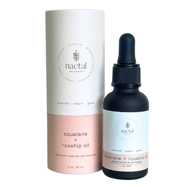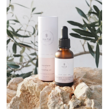 Naetal's squalane is naturally derived from olive and about 13% of human sebum is squalane which is an important skin-identical ingredient and NMF (natural moisturizing factor). Rosehip oil also known as Rosa Canina Seed oil is derived from the rosehip fruit containing the seeds that are extracted to become oil.