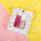 - Duo set containing a Polly pink nail polish and a raspberry rollerball lip gloss.