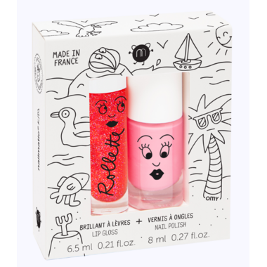 The ultimate beauty kit for a budding beauty fan: Cookie pink nail polish and strawberry Rollette lip gloss. Prettiness guaranteed with this dreamy-cool super duo!