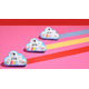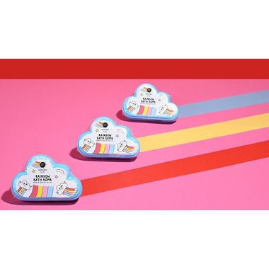Our rainbow cloud bath bomb gently cleans and softens delicate skins.
