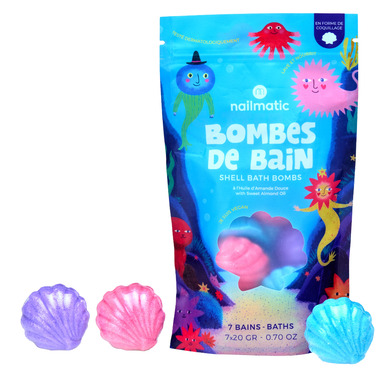 The set includes 7 bath bombs, making it easy to enjoy a full week of colorful, feel-good baths. Parents will love that the fun stays in the water: no stains on skin or bathtub, just simple, stress-free clean-up. Whether used as part of a bedtime routine or as a special treat, Nailmatic Shell Bath Bombs bring a touch of magic, softness, and imagination to bath time one shell at a time.