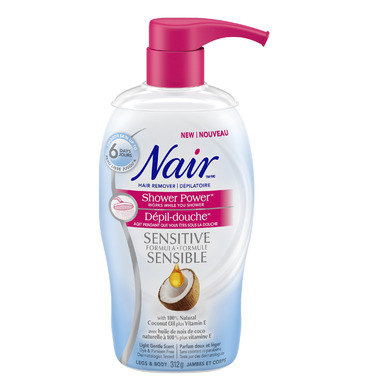 Nair shower power hair remover removes hair as you shower for effortlessly smooth skin. This rich formula is specially designed for sensitive skin on your legs and body. It uses the nourishing power of 100% natural coconut oil plus vitamin e to moisturize, leaving you with glowing, hair-free skin. The Nair nourish shower power sensitive formula is an easy-to-use, affordable and mess-free solution to removing unwanted hair. Simply apply the cream to your skin with the included sponge while you shower. Nair shower power gives you professionally smooth results in the comfort of your own home - no need to take time out of your day for trips to the salon. As it sits, the cream removes hair below the skin's surface, leaving your skin smooth and radiant for days longer than shaving.  It gently removes hair from the most sensitive areas and moisturizing as it works, Nair goes below the skin surface, unleashing amazingly silky skin within minutes.