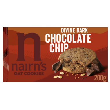Nairn's Dark Chocolate Oat Cookies are Plant-based, made with 35% less sugar and whole grain oats. Baked in Scotland since 1896.