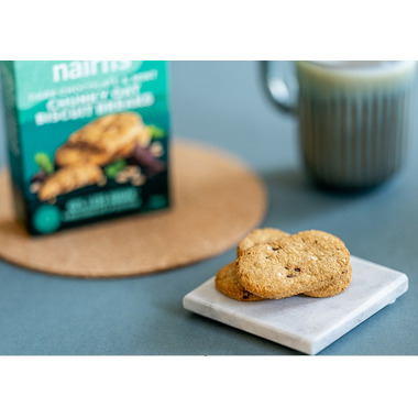 Nairn's Gluten Free Dark Chocolate and Mint chunky oat cookies are made with whole grain oats and 36% less sugar than the average sweet cookie.
