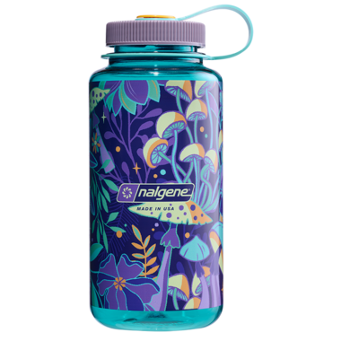 Nalgene Sustain Water Bottle Wide Mouth Blue with Mushrooms