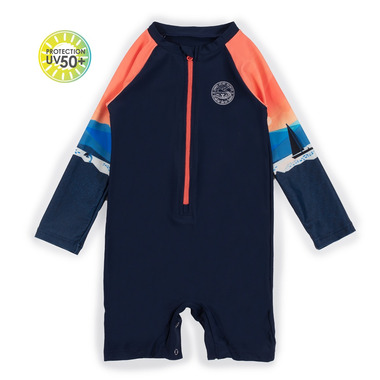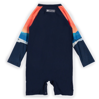 Nano's Printed one-piece that has Raglan long sleeves and a front zipper. This one-piece has UPF 50+ sun protection.