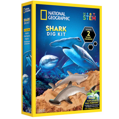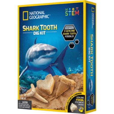 National Geographic's Shark Tooth Dig Kit lets children dig up and explore fossils from three different species of shark. With a full-color learning guide full of amazing shark facts and pictures, kids will have a blast while they identify the teeth of the sand tiger, otodus, and crow sharks, and learn all about what make sharks the oceans most feared predators.