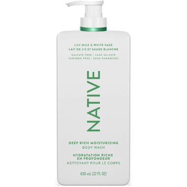 Say bye to dry skin with Native 24-Hour Moisturizing Body Wash. Infused with real shea butter, this luxurious body wash leaves your skin feeling soft, smooth, and hydrated all day long. Free of sulfates, parabens, petrolatum, and dyes, this body wash for men and women provides 4x moisturizers on skin* compared to leading moisturizing body wash. It's also thoughtfully made with minimal ingredients for a soothing cleanse that's great for all skin types. The rich, creamy suds help lock-in moisture, so your skin feels replenished after you rinse. Let the refreshing scent turn your shower into a happy escape. Singing while you wash is highly recommended.