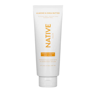 Getting strong, healthy locks doesnt have to be complicated. Native Almond & Shea Butter Hair Mask gives strength to your strands with just 10 thoughtful ingredients. This hydrating hair mask nourishes strands and helps to replenish damaged hair by restoring moisture and reducing breakage. Like all Native hair care products, it's free of sulfates, parabens, silicone, and dye, and its vegan and cruelty-free. Apply generously to wet hair, let sit for 3-5 minutes, and rinse clean. Life's complicated enough, your hair care doesn't have to be.