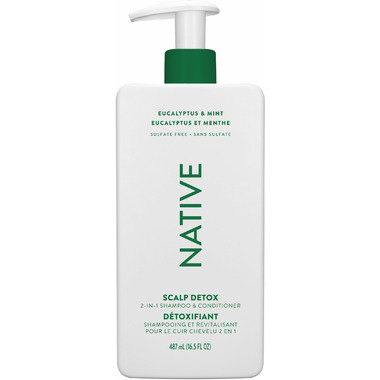 Wash away dirt, oil, and product buildup while conditioning your hair with Native Scalp Detox 2-in-1 Shampoo & Conditioner. This clarifying and nourishing formula is your one-step solution for soft, shiny hair and a happy, healthy scalp. Free of sulfates, parabens, silicones, and dyes, this 2-in-1 shampoo and conditioner is thoughtfully made with minimal, clean ingredients. It's great for oily hair and rinses off easily without stripping, leaving nothing behind but a revitalizing scent you'll want to sniff all day.