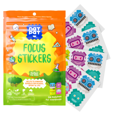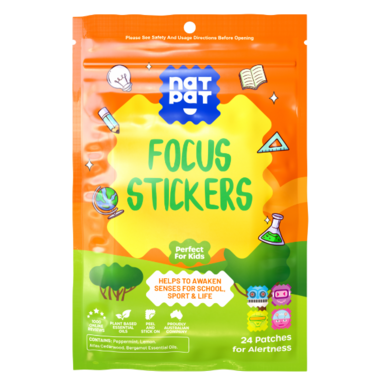 Supports laser-like focus. For many children and adults, maintaining sustained attention during various activities can be a challenge. Enter the FocusPatch, an all-natural, essential-oil-infused sticker designed to create an environment that is energizing and uplifting. This special formulation aims to support an atmosphere conducive to mastering work, sports, and other life activities that benefit from a heightened state of engagement. Infused with high-quality essential oils such as Lemon, Atlas Cedarwood, Bergamot, and Peppermint, the FocusPatch not only smells fantastic but also adds a fun, colorful touch to your day. Most importantly, it's fun and easy to use, making it a perfect addition to your daily routine for an uplifted and vibrant environment.