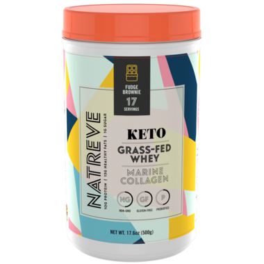 Natreve Keto Protein Powder with collagen and MCTs contains the most efficacious, highly absorbable, sustainably sourced pure marine collagen and premium 100% grass-fed, hormone-free whey isolate with the added benefits of healthy fats. Keto Protein is Non-GMO Project Verified, Informed Sport Certified, and Gluten-Free. This product contains no added sugar and is made with no artificial colors, flavors, or sweeteners.