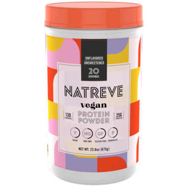 Natreve Vegan Protein Powder contains a special and carefully blended multi-sourced plant-based protein complex from organic pea, organic pumpkin seed, and organic brown rice. Our vegan formula brings you a well-balanced protein source with the added benefits of probiotics, organic grains, and organic greens. Vegan Protein is Non-GMO Project Verified, Informed Sport Certified, and Gluten-Free. This product contains no added sugar and is made with no artificial colors, flavors, or sweeteners.