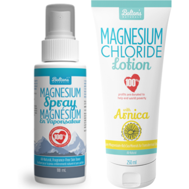 Natural Calm Bolton's Magnesium Chloride Spray & Lotion Arnica Bundle