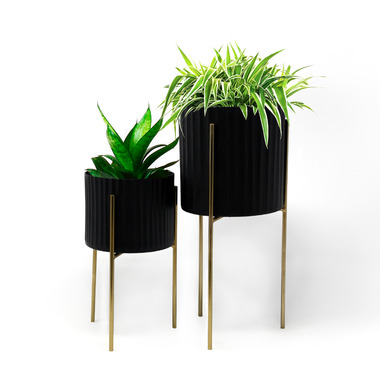 Natural Living black metal standing planters with gold finish - set of 2.