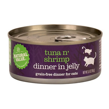 Natural Value Tuna n' Shrimp Dinner is full of flavour, with real tuna and shrimp. Complete and Balance to keep your pet happy and healthy. Tuna n' Toppings cat food is grain-free and with no by-products or fillers. Tuna n' Shrimp is formulated to meet the nutritional levels established by the AAFCO Cat Food Nutrient Profiles for maintenance.