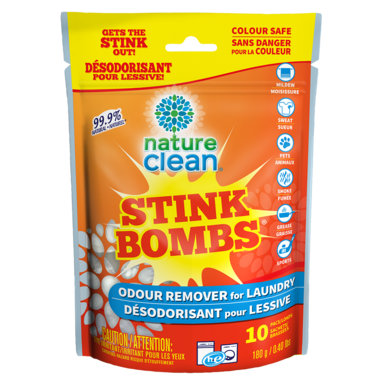 Get stink out! These laundry tabs by Nature Clean are designed to eliminate odours from sweat, mildew, pets, smoke, athletics and more!