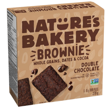 Nature's Bakery Double Chocolate Brownie with whole grains, dates and cocoa.
