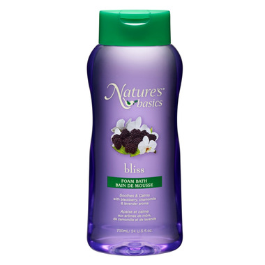 Nature's Basics Bliss Foam Bath lathers into rich, luxurious bubbles that moisturize and gently cleanse your skin. The aroma of blackberry, chamomile & lavender fill the air to help relieve daily stress and strain. Bliss Foam Bath is enriched with 100% PURE Fruit Juice Blend derived from blackberries, blueberries, raspberries, strawberries and a mixture of Vitamins A, B & C.