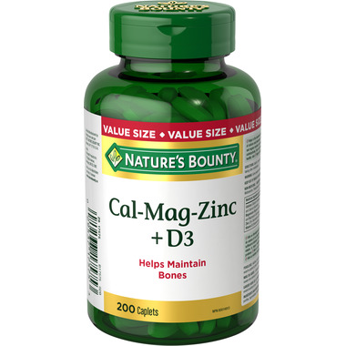 Medicinal ingredients per caplet: Calcium (calcium carbonate and calcium gluconate) 333 mg, Magnesium (magnesium oxide and magnesium gluconate) 133 mg, Zinc (zinc gluconate and zinc citrate) 8 mg, Vitamin D (cholecalciferol) 5 mcg (200 IU).