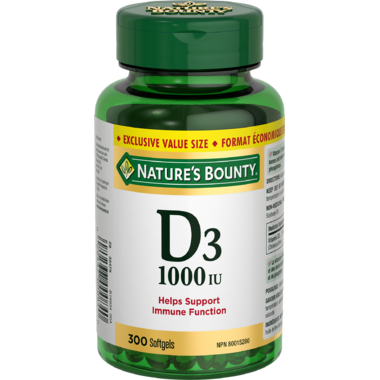 Vitamin D, also known as the Sunshine Vitamin, is an essential nutrient that the body creates by converting cholesterol in the body via sunshine. Supplementing with Nature's Bounty Vitamin D3 is an easy way to help increase your daily intake of this important nutrient, which helps in the development and maintenance of bones and teeth.