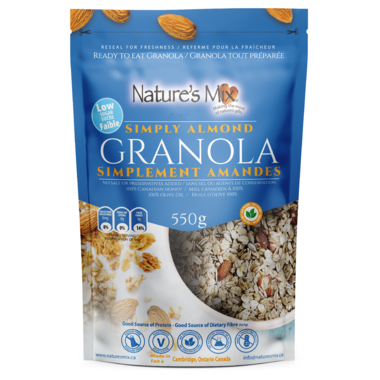 Oats, Sugar (honey), Almonds, Sunflower Seeds, Olive Oil, Cinnamon. Contains: Almonds. May Contain: Cashew, Walnut, Pecan