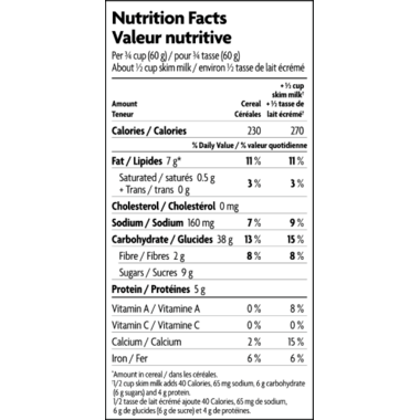 Ingredients: Whole grain rolled oats*, cane sugar*, corn meal*, yellow corn flour*, sunflower oil*, almond butter*, peanut butter*, sprouted brown rice protein*, sea salt, honey*, rice starch*, tocopherols (added to enhance freshness). *Organic