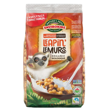 Nature's Path EnviroKidz Organic Leapin' Lemurs include a popular mix of chocolate and peanut butter corn puffs. No artificial flavors, colors or preservatives.