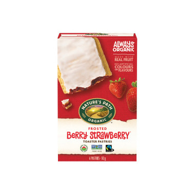 Nature's Path frosted strawberry organic toaster pastries contain a real strawberry fruit filling, encased in an organic pastry, and lightly frosted. You get 2 pastries per wrapper, 6 pastries per box. These organic toaster pastries are always made with real fruit, Fairtrade ingredients and no artificial flavours. The real, fruit-filled centre is baked into a golden pastry for a tasty treat straight out of the toaster.