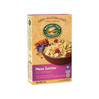 Nature's Path Organic Mesa Sunrise Cereal is a unique gluten-free, wheat-free medley of Indian corn, flax, and amaranth blended into crunchy, golden cereal flakes.