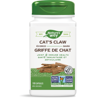 Nature's Way Cat's Claw Bark is used in herbal medicine to support the immune system and to help relieve joint pain associated with osteoarthritis and rheumatism. Nature's Way Cat's Claw Bark is Vegetarian and Non-GMO Project Verified.