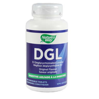 Nature's Way DGL is a unique, chewable extract which supports optimum digestive health. It's chewable because saliva enhances its natural compounds and promotes its absorption in your body.