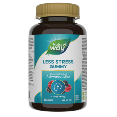 Formulated with clinically studied Sensoril Ashwagandha, Nature’s Way Less Stress gummies help to reduce the symptoms of stress, such as fatigue, sleeplessness, irritability, and inability to concentrate. They can also help to reduce cortisol and C-reactive protein levels, the biomarkers of physical stress. With a fruity natural mixed berry flavour, each individual gummy contains 62.5 mg of ashwagandha. The 100% vegetarian gummies are gelatin free, gluten free and contain no wheat, yeast-derived ingredients, soy, peanuts, eggs or dairy. For peace of mind, the supplement is made from pure, high quality ingredients, backed by rigorous testing.