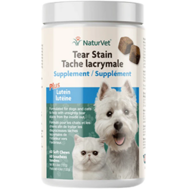 NaturVet Tear Stain Supplement Plus Lutein Soft Chew for Dogs & Cats