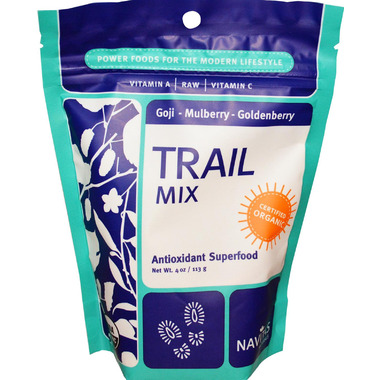 Navitas Naturals Organic Three Berry Trail Mix takes trail mix back to its superfood roots by combining nature’s most powerful and delicious berries. This premium trail mix contains high-energy goji berries, sweet antioxidant-rich mulberries, and vitamin-packed goldenberries. Enjoy this Trail Mix by the handful or in recipes as a nutritious gourmet boost.