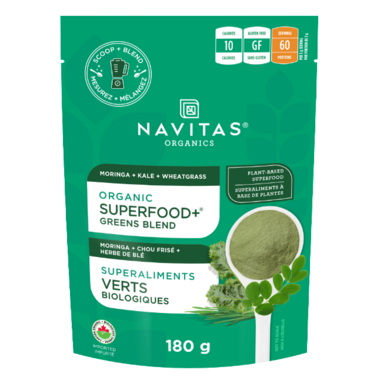 An Organic and plant based superfood greens blend that includes moringa, kale and wheatgrass. Scoop and blend!