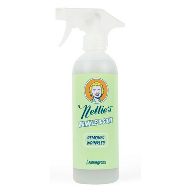 Nellie’s All-Natural Wrinkle-B-Gone is a plant-based formula that will remove wrinkles and freshen fabrics with Nellie’s signature lemongrass fragrance.