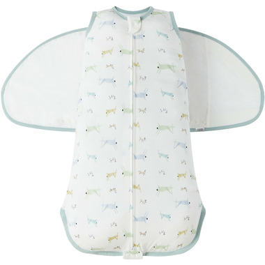 Keep babies snug as a bug with Nest Designs Swaddle Sleep Bags. Made from our luxurious bamboo cotton blend for sizes 0-6M, the soft fabric is only the beginning. This sleeveless sleep bag is perfect for warm weather, with a mere 0.25 TOG rating. A two-way zipper with a protective zipper flap keeps little ones safe and secure. The set is complete with removable, baby-safe hook and loop wings that wrap little ones in a cozy embrace.