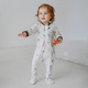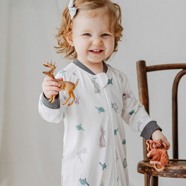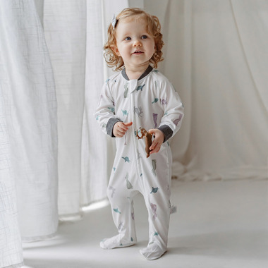 Cute and convenient for bedtime, Nest Designs one-piece footed sleepers are the PJs for even the smallest babies. We make this sleeper from a bamboo cotton blend that has just a kiss of Spandex, offering little ones a luxuriously soft fabric that moves with them even active sleepers. Sewn with flat seams, babies avoid the discomfort that comes with standard seams. Featuring a two-way zipper and a zipper flap for safety, parents can dress their babies for bed or diaper changes without fumbling with several snaps.