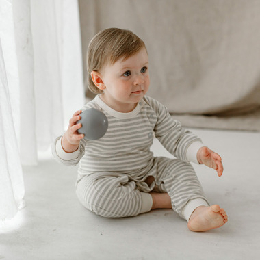 Nest Designs Nest Designs Basics French Terry Long Sleeve Romper Grey Stripe