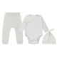 Nest Designs 3-piece baby gift set includes a baby's first year essentials from Nest Basics collection: a Long Sleeve Kimono Onesie, Harem Pants, and Knotted Hat. Made from a blend of bamboo, cotton, and spandex, this gift set is soft and gentle against a baby's delicate skin, breathable, and hypoallergenic. It comes in neutral colours that make it easy to mix and match.