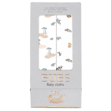Keep your little one squeaky clean with our soft and versatile Bubs baby washcloths.This everyday essential is made with super absorbent and quick drying bamboo blended muslin. Use these washcloths for wiping food-covered faces and tiny hands, catching drips from milk drunk smiles, and gently scrubbing delicate skin during bath time.