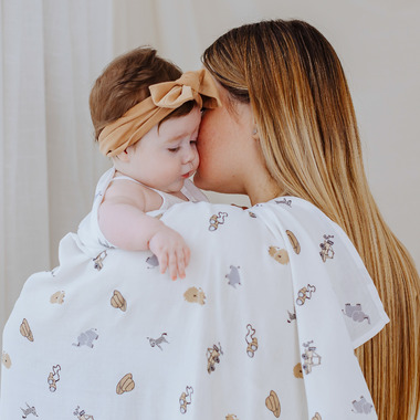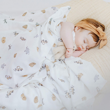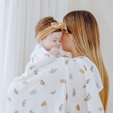 Soothe your newborn into dreamland with our cozy bamboo swaddle blanket. Made with two layers of oh-so-soft bamboo muslin, you'll both rest easy with this breathable, lightweight, and hypoallergenic blanket. Let our swaddle blanket work harder so you don't have toit's versatile enough to also be used as a burp cloth, nursing cover, stroller shade, peekaboo blanket, and more.
