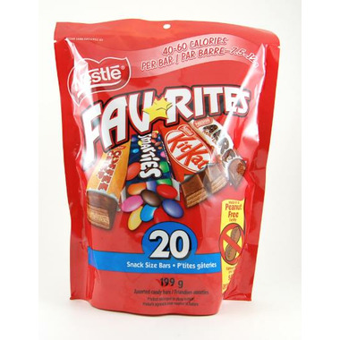 FAV*RITES is an assorted pack of your Favourite Nestle Snack Size Bars - SMARTIES, AERO, COFFEE CRISP and KIT KAT