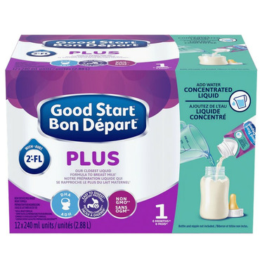 GOOD START is Pediatricians #1 choice for the easiest formula on baby's tummy. GOOD START PLUS 1 Concentrated Liquid is designed for babies from birth (0 months) and older and is their closest liquid formula to breast milk. Just add water as directed and shake well. The easy-to-use concentrated liquid format comes in recyclable packaging, mixes easily with no clumps, and has a reclosable cap. GOOD START PLUS 1 Concentrated Liquid contains COMFORT PROTEINS, 100 percent whey proteins partially broken down using their unique process for small tummies. This baby formula is non-GMO, contains DHA, an Omega 3 fat that contributes to your baby's normal physical brain and eye development, and has 2'-FL, an oligosaccharide. 2'-FL helps support baby's developing immune system and gut health.(2-4) More pediatricians trust GOOD START as the easiest on baby's tummy than any other routine infant formula brand. December 2023. Data on file. Like all infant formulas. Ingredients not genetically engineered.