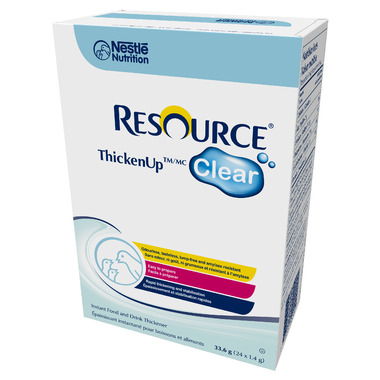 Resource ThickenUp Clear is a xanthan-based powdered thickener that remains clear, lump-free, tasteless, odourless, and maintains consistency over time after mixing. Resource ThickenUp Clear is clinically demonstrated to improve swallowing safety. Can be added to most hot and cold liquids. For the nutritional management of dysphagia.