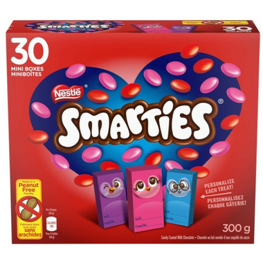 Share a little love this Valentine’s Day with NESTLÉ SMARTIES Valentine’s Milk Chocolate Pack of 30 (300 g). Red and pink candy-coated milk chocolate SMARTIES are a delicious and perfect way to share some favorites with friends, family, or even that special someone. Not only are they as vibrant as ever and in festive colors for Valentine’s.